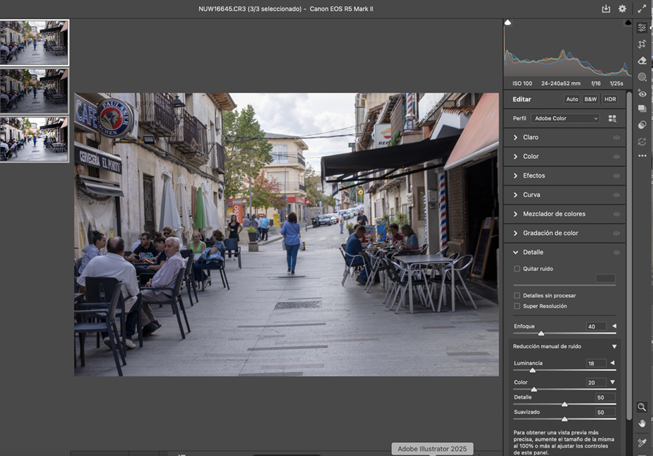 · Under Detail, set Color Noise Reduction: 20 and Noise Reduction: 18.
